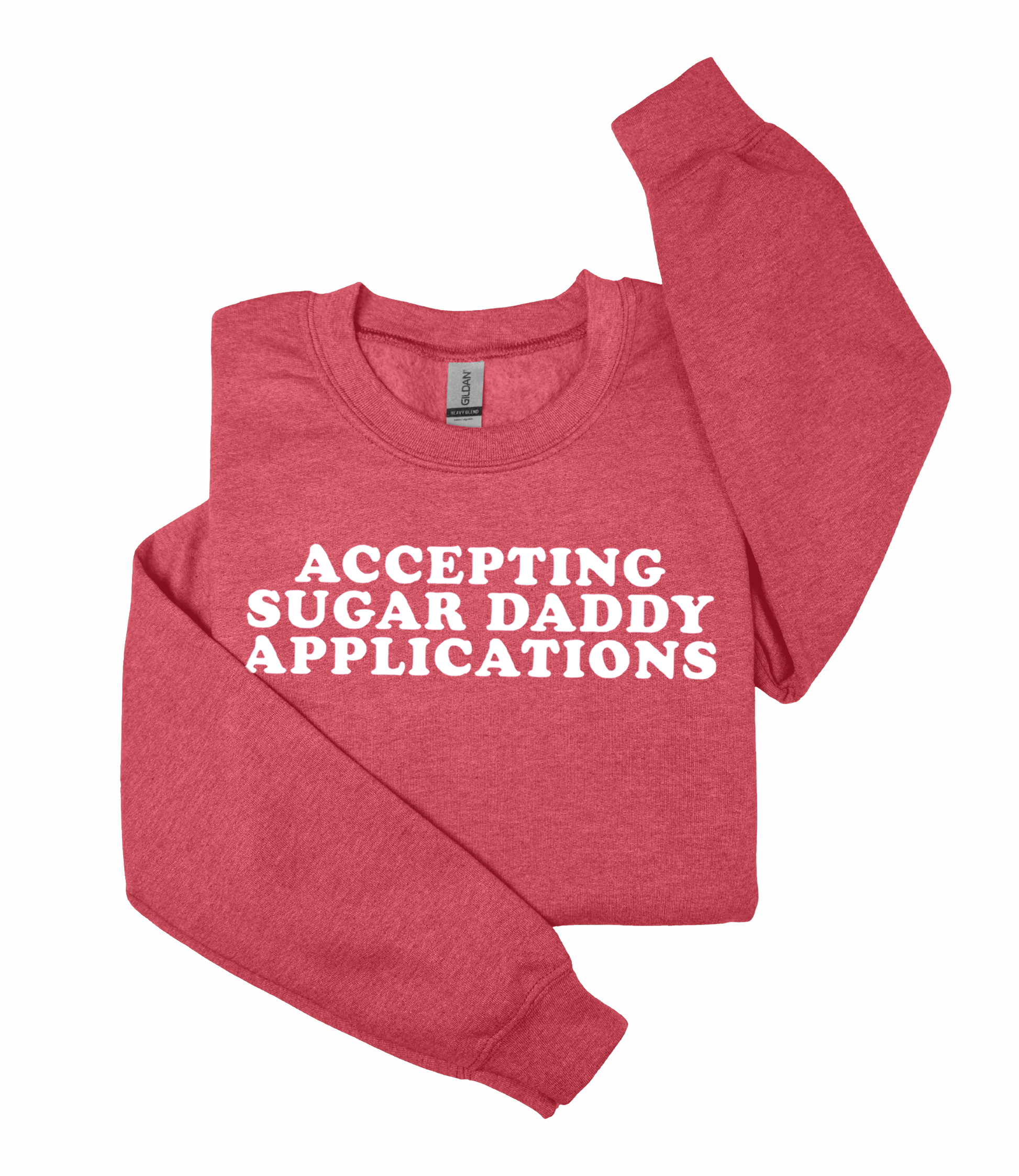 Make a bold statement with the Accepting Sugar Daddy Applications Heavy Blend™ Crewneck Sweatshirt—the perfect piece for those with a confident sense of humor. Crafted from premium Heavy Blend™ fabric, this sweatshirt delivers exceptional comfort and durability that lasts through countless wears and washes. The classic crewneck design pairs effortlessly with your everyday wardrobe, while the eye-catching graphic ensures you'll turn heads and spark conversations wherever you go. Whether you're lounging at home, running errands, or hanging out with friends, this versatile sweatshirt keeps you cozy without compromising on style. The substantial weight and quality construction mean you're investing in a piece that won't fade or lose its shape. Embrace your playful personality and let this sweatshirt do the talking—it's the ultimate conversation starter for anyone who appreciates witty, unapologetic fashion.